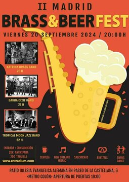 Segunda edición de un festival único en Madrid con bandas y música al más puro estilo del jazz de Nueva Orleans en el rincón más encantador y desconocido del centro de la ciudad. Ven a disfrutar y bailar al al compás de tres de las mejores bandas del género en Madrid, en formato totalmente acústico al aire libre, mientras saboreas una rica cerveza alemana acompañada de salchichas y deliciosos brezels.